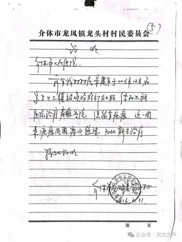 山西省晋中市介休市龙凤镇龙头村村委主任被曝“恶行连环”:骗保涉黑害命伤人践踏底线,伤者上访公安部回转介休公安局“闭环推诿”,多部门监管失守触怒民心!
