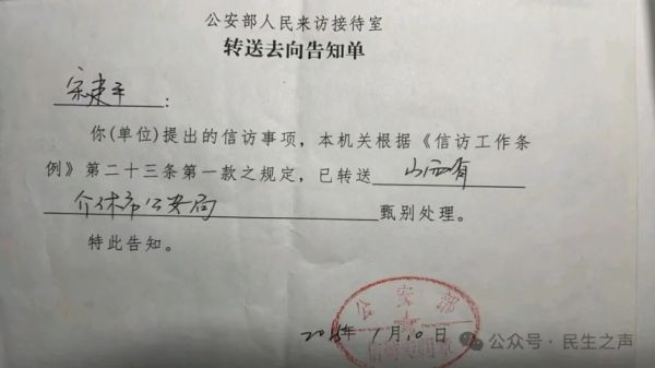 (公安部转送去向告知单)